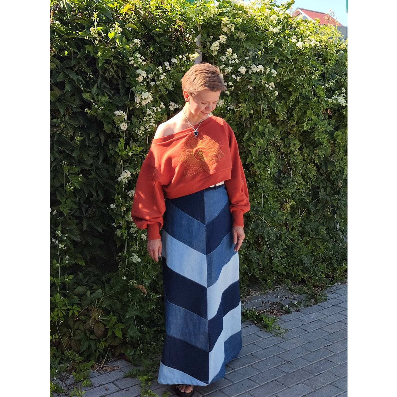 Укороченная толстовка «Солнце» выполнена из легкого футера. На груди — вышивка «золотыми» нитями. Толстовка свободная, но отлично сидит, можно открывать одно плечо. Обратите внимание, у толстовки 2 размера на разный рост. Если ваш рост ниже среднего, или вы хотите толстовку покороче, выбирайте размер «мини»