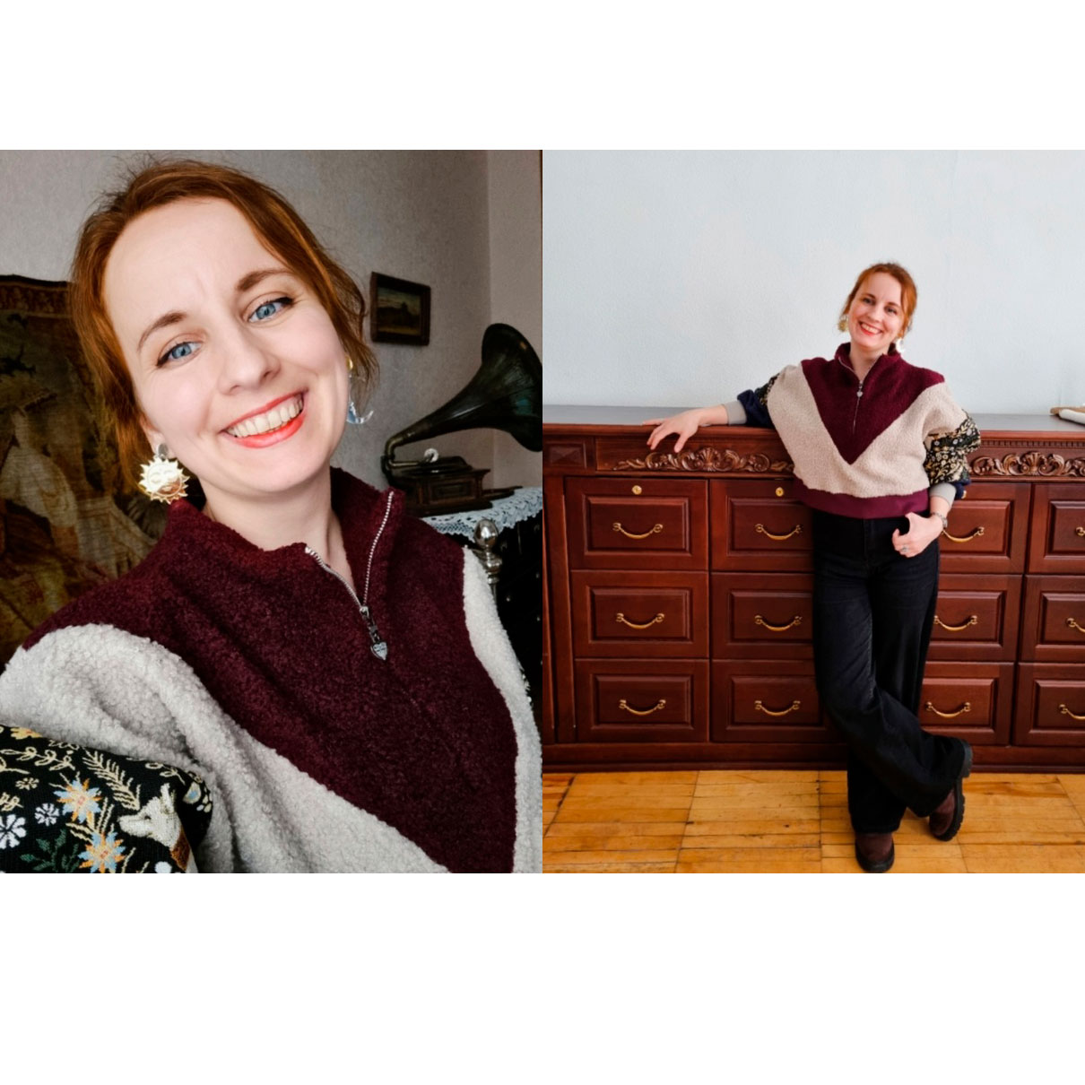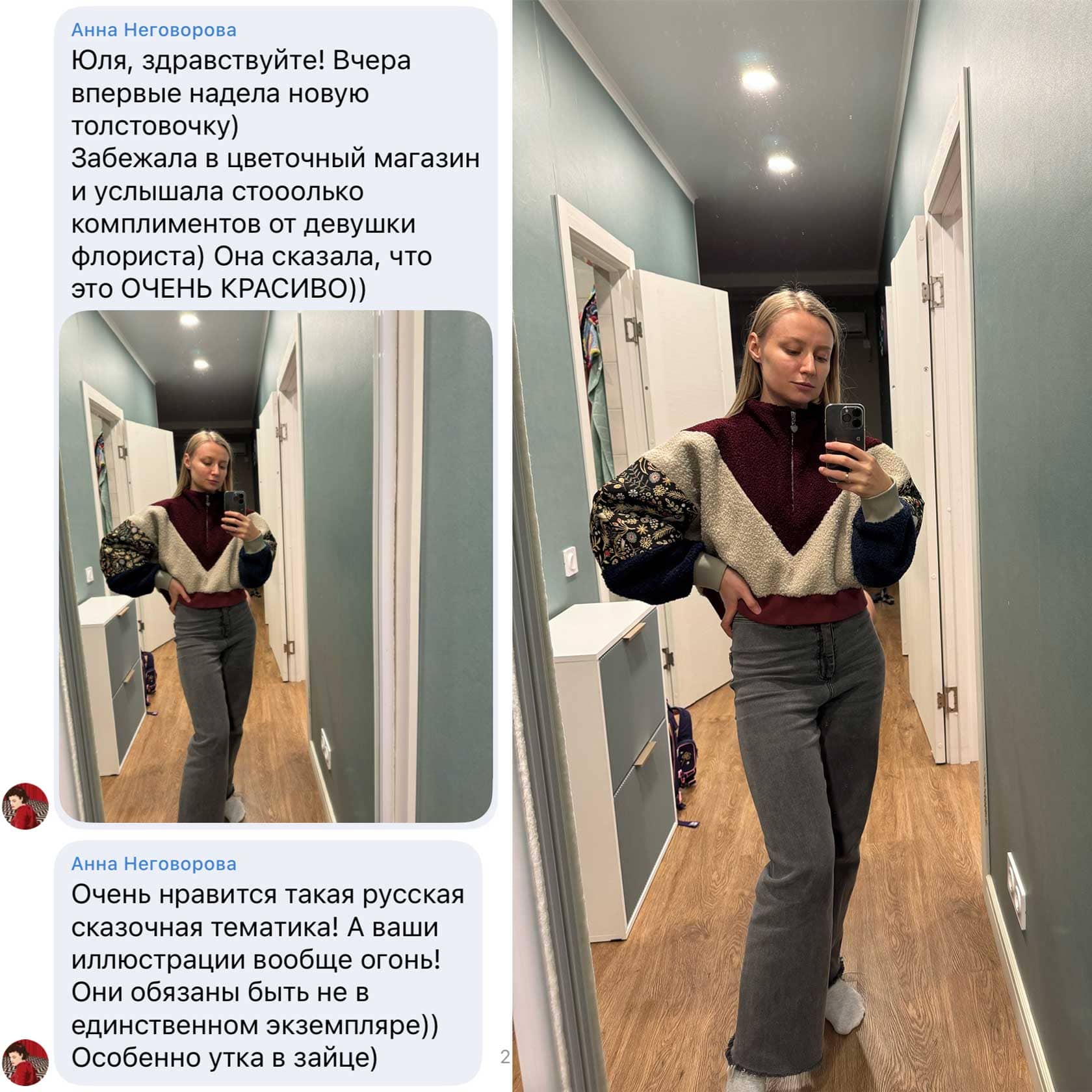 Толстовка из «барашка» на флисе с гобеленовыми вставками, как иллюстрации из книги сказок.