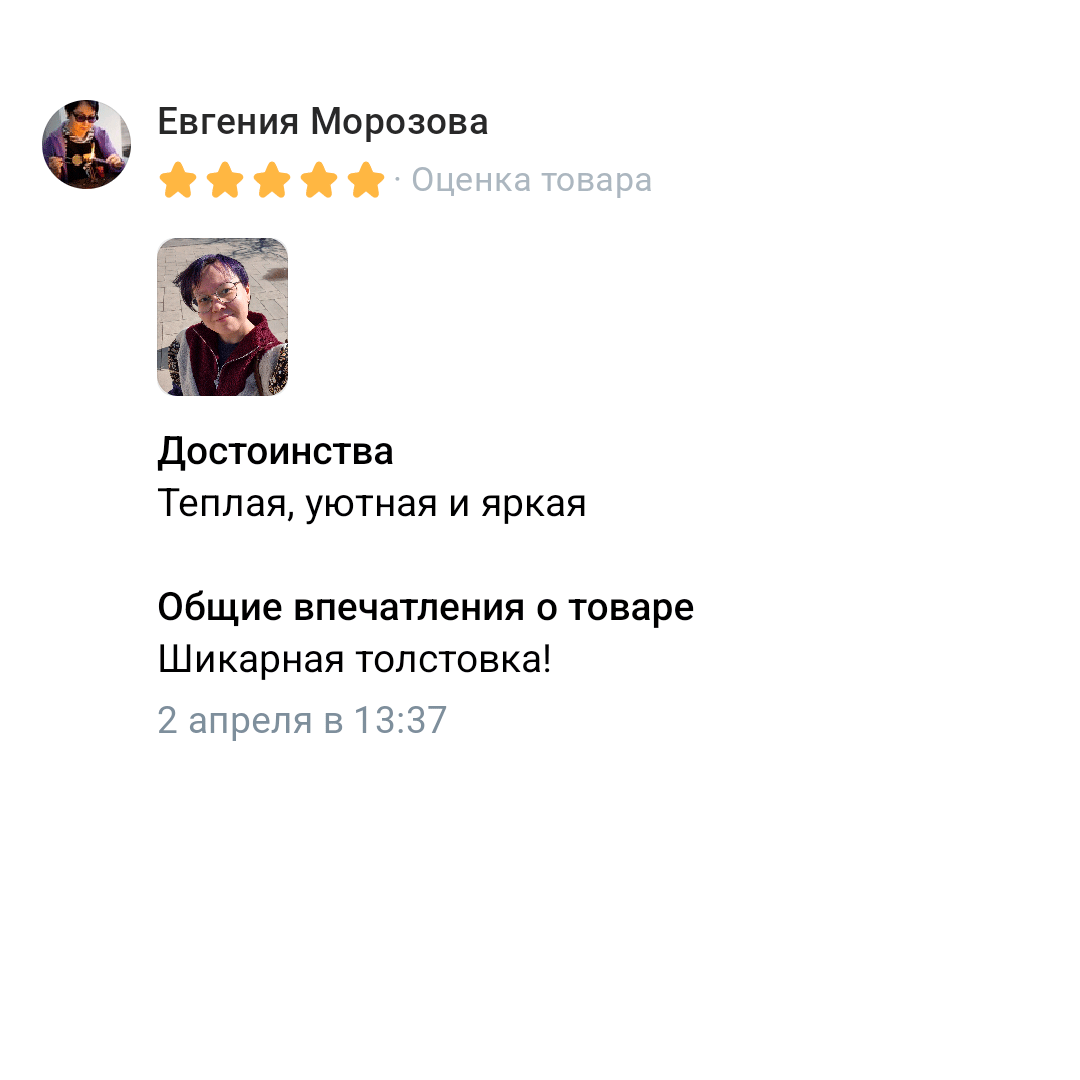 Толстовка существует в двух размерах: «единый» и «единый плюс».